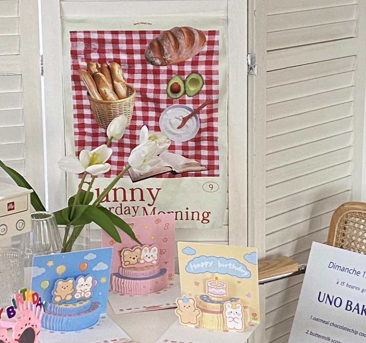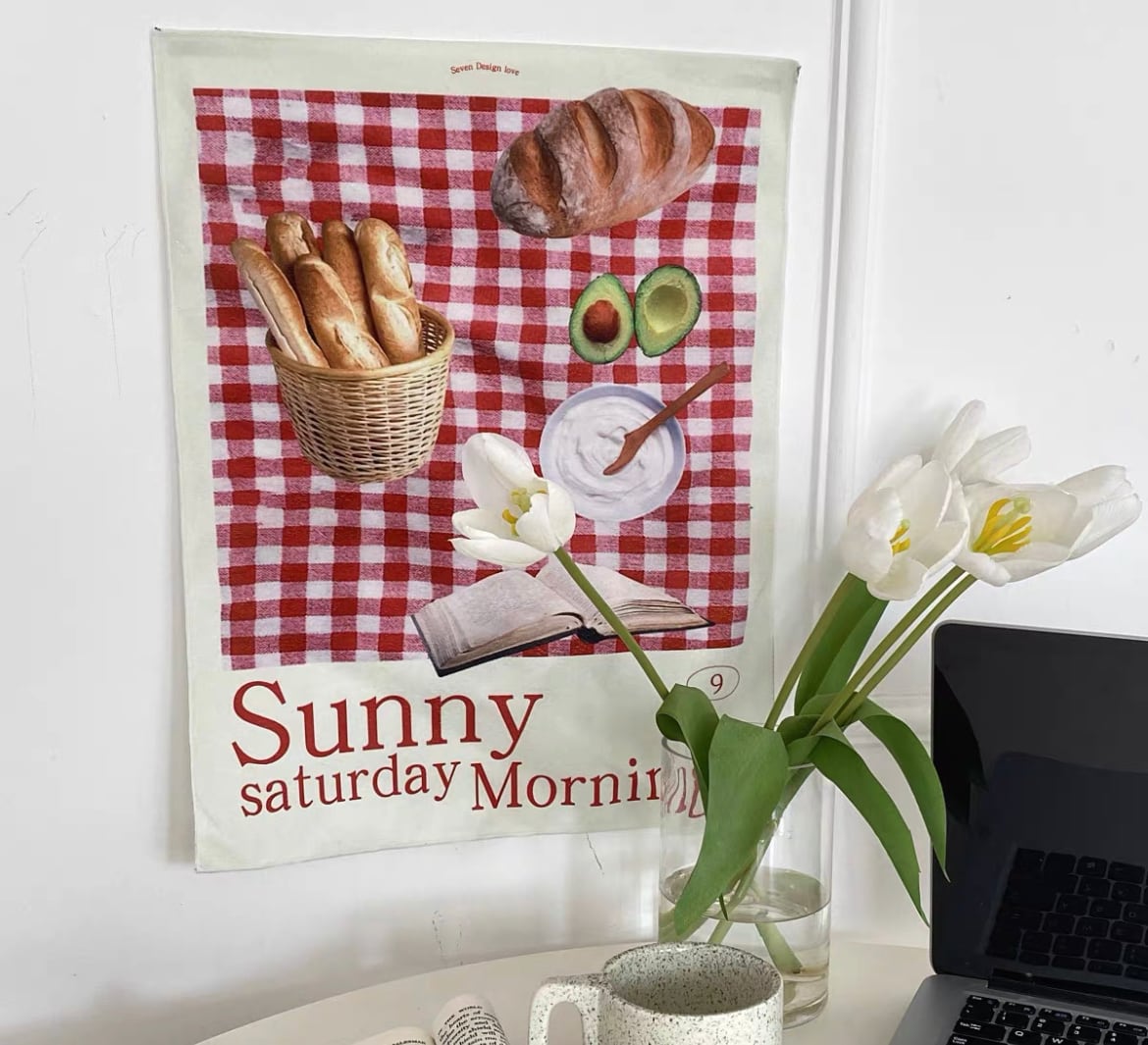 【予約】パン×チェック タペストリー 韓国雑貨 カフェ風 韓国インテリア