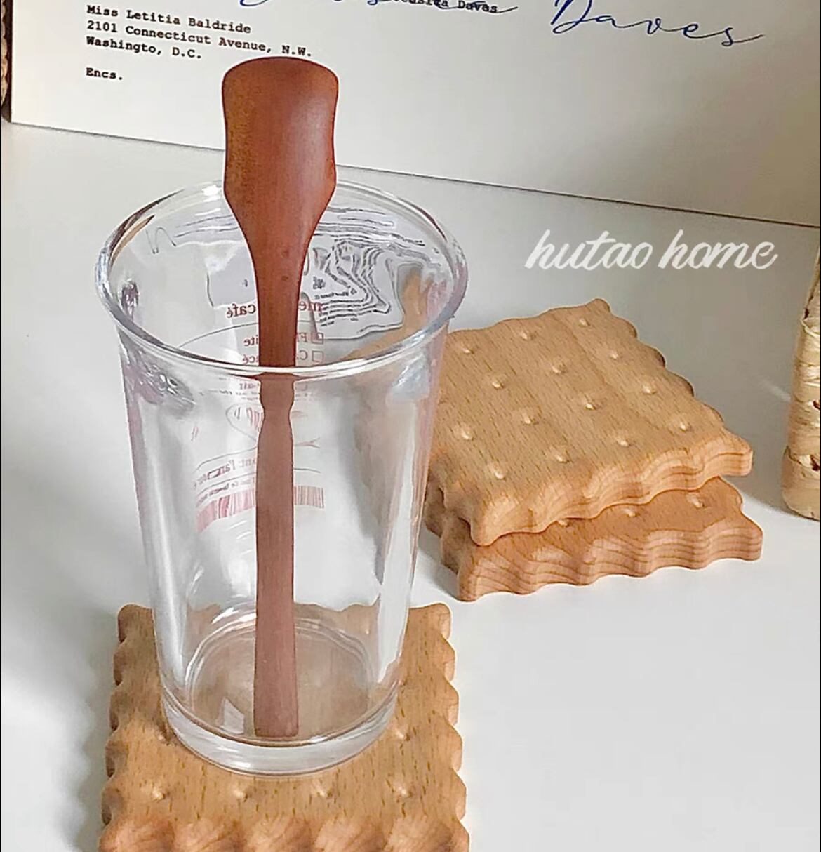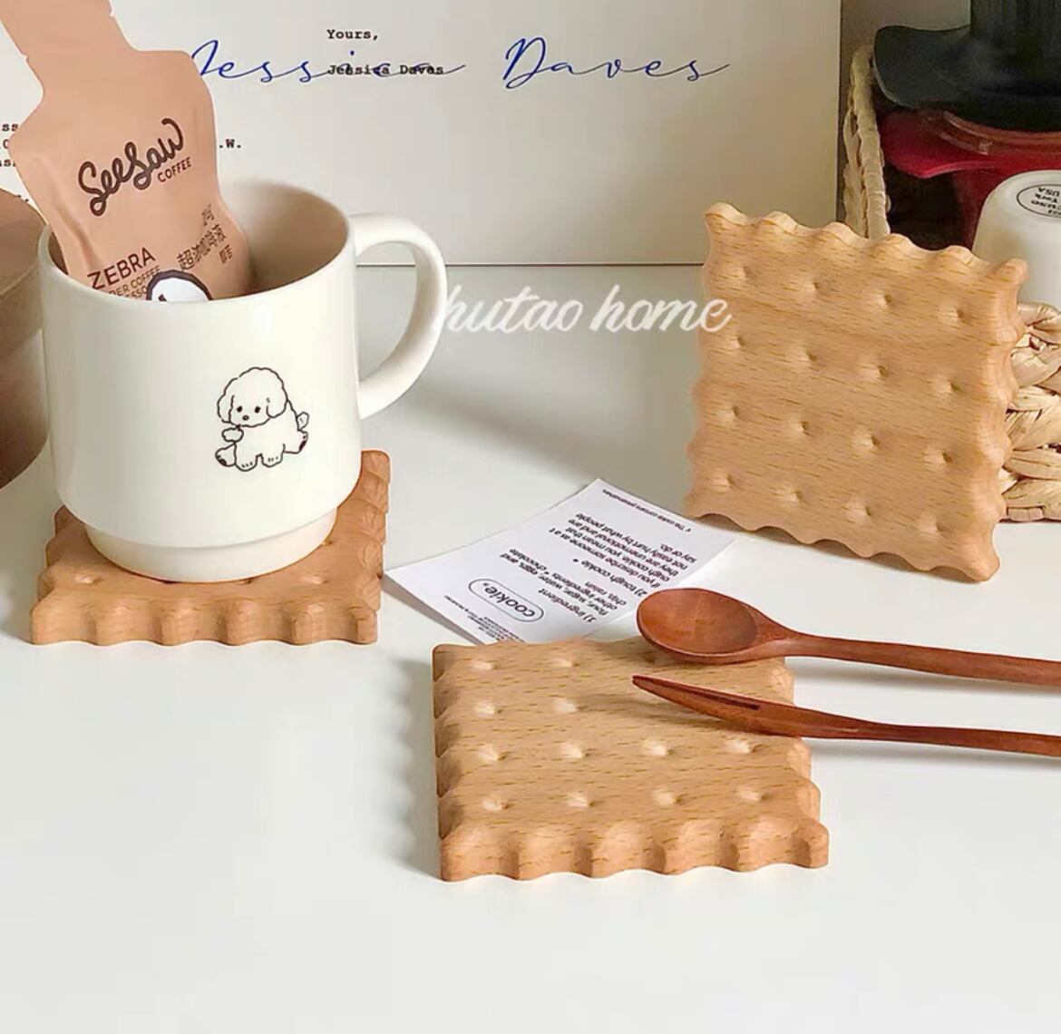 【予約】WOODビスケットコースター 韓国雑貨 カフェ風 韓国インテリア